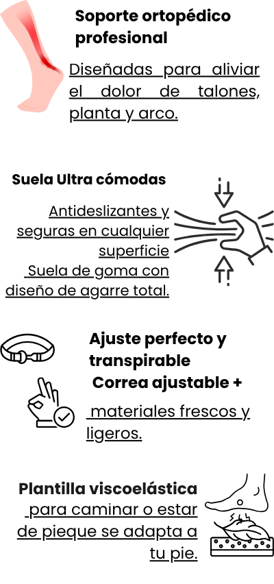 Sandalias ortopédicas con plantilla viscoelástica, soporte para el arco y suela antideslizante. Alivio inmediato para pies cansados, fascitis plantar y dolor en rodillas o espalda.