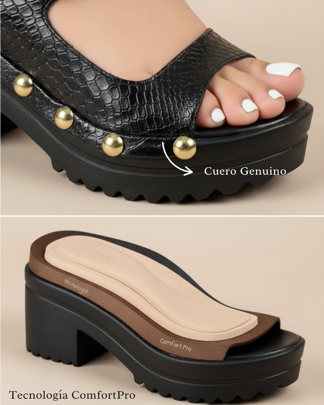 El 90% de las sandalias planas no ofrecen soporte, causando dolores en el talón, el arco y la espalda. No tienes que sacrificar tu salud por lucir bien. Presentamos la única sandalia que combina la belleza atemporal con la innovación ortopédica.
